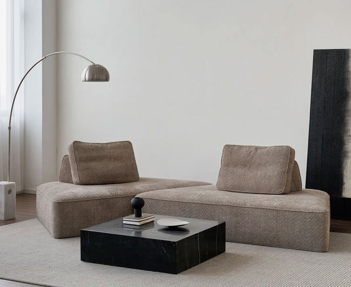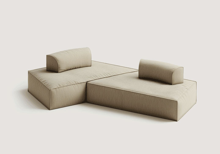 A Loaf Link set includes four core components—two free-standing backrest sections and two layers of seating sections—plus two matching cushions. These elements can be used individually or combined as a full sofa or a temporary bed. The backrest sections can also be flexibly placed anywhere in the home for relaxed reclining, while the cushions add an extra layer of comfort and styling versatility.
